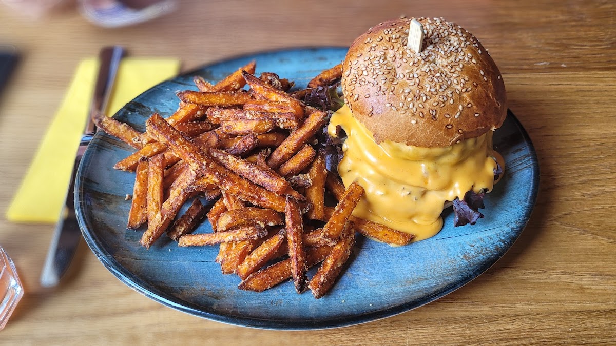 One of the standout dishes at Kulturcafé Alte Krähe is their signature Cheeseburger Mit Süßkartoffelpommes. The rich, juicy cheeseburger paired with crispy sweet potato fries creates a delightful contrast in flavors and textures. If you're more of a traditionalist, the Cheeseburger Mit Pommes Frites is another must-try. These classic combinations have quickly become favorites among locals and visitors alike.